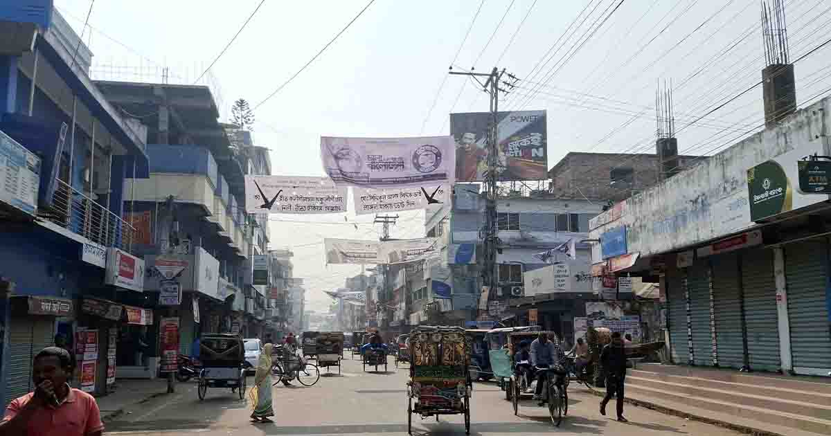 কিন্তু সরেজমিনে মঙ্গলবার (১৬ ফেব্রুয়ারি) শহরের শহীদ ডা. জিকরুল হক সড়ক, সিনেমা রোড, জিআরপি চত্ত্বর, ক্যান্টনমেন্ট সড়কসহ বিভিন্ন প্রধান সড়ক ও আবাসিক এলাকায় দেখা যায় এখনো অসংখ্য কাপড় ও প্লস্টিকের ব্যানার ঝুলে আছে। অনেক জায়গায় খোলা ব্যানার ও ফেস্টুন সড়ক ও ফুটপাতে পড়ে থাকতে দেখা গেছে, যা বৃষ্টি হলে ড্রেন ও নালায় গিয়ে জলাবদ্ধতা সৃষ্টি করতে পারে বলে আশঙ্কা করছেন স্থানীয়রা।