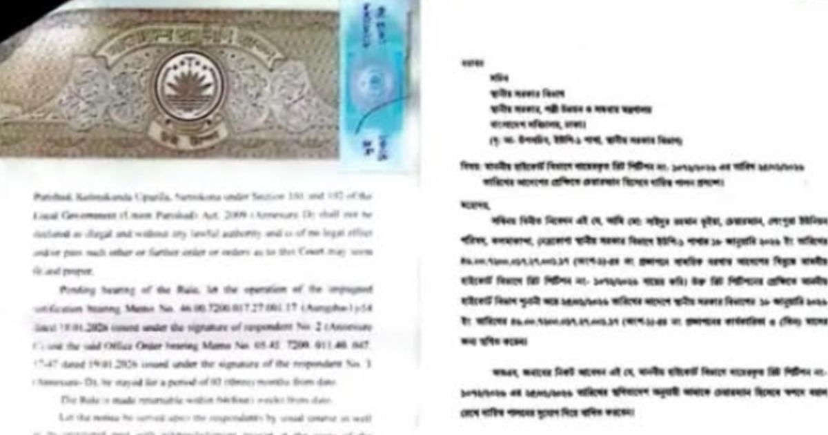আদালত সূত্রে জানা গেছে, রিট আবেদন নম্বর ১০৭২/২০২৬-এর পরিপ্রেক্ষিতে হাইকোর্ট একটি রুল জারি করেন। রুলে ‘স্থানীয় সরকার (ইউনিয়ন পরিষদ) আইন, ২০০৯’-এর ধারা ১০১ ও ১০২ অনুযায়ী জারি করা ঘোষণাপত্র ও দপ্তর আদেশ কেন বেআইনি ঘোষণা করা হবে না তা জানতে চাওয়া হয়েছে। একইসঙ্গে গত ১৮ ও ১৯ জানুয়ারি ২০২৬ তারিখে জারি করা সংশ্লিষ্ট আদেশের কার্যকারিতা তিন মাসের জন্য স্থগিত করা হয়েছে এবং চার সপ্তাহের মধ্যে রুলের জবাব দিতে নির্দেশ দিয়েছেন আদালত।