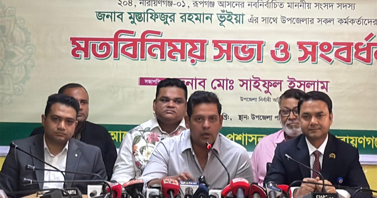 মঙ্গলবার (২৪ ফেব্রুয়ারি) দুপুরে রূপগঞ্জ উপজেলা পরিষদ মিলনায়তনে উপজেলা প্রশাসনের উদ্যোগে আয়োজিত মতবিনিময় সভা ও সংবর্ধনা অনুষ্ঠানে প্রধান অতিথির বক্তব্যে তিনি এসব কথা বলেন। সভায় উপজেলার বিভিন্ন দপ্তরের কর্মকর্তা, ইউনিয়ন পরিষদের চেয়ারম্যান, মুক্তিযোদ্ধা ও সাংবাদিকরা নবনির্বাচিত সংসদ সদস্যকে ফুলেল শুভেচ্ছায় বরণ করে নেন।