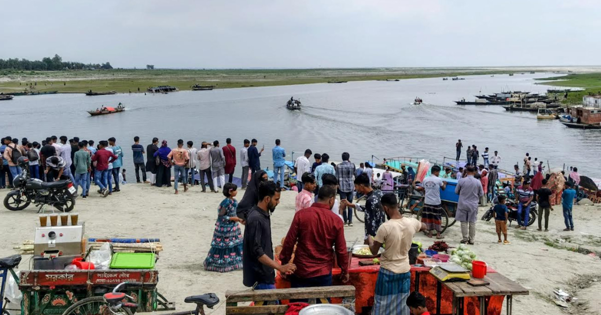 পবিত্র ঈদুল ফিতরের টানা ছুটিতে যমুনার তপ্ত বালুচর আর শীতল জলরাশি এখন উৎসবপ্রেমীদের মিলনমেলায় পরিণত হয়েছে। বগুড়ার সারিয়াকান্দি উপজেলার যমুনা নদীর পাড় ঘেঁষে নির্মিত কালিতলা গ্রোয়েন ও প্রেম যমুনার ঘাট (দিঘলকান্দি হার্ড পয়েন্ট) এলাকায় এখন তিল ধারণের জায়গা নেই। এছড়াও হাটশেরপুর ইউনিয়নের হাসনাপাড়া স্পার, কর্ণিবাড়ি ইউনিয়নের মথুরাপাড়া হার্ড পয়েন্ট ও ফিসপাস, কুতুবপুরের নদী তীর রক্ষা বাঁধ এলাকাতেও ছিল দর্শনার্থীদের উপচে পড়া ভিড়। ঈদের দিন বিকেল থেকে শুরু হওয়া এই জনস্রোত আজ মঙ্গলবারও (২৪ মার্চ) অব্যাহত রয়েছে, যা উত্তরবঙ্গের পর্যটন মানচিত্রে সারিয়াকান্দি ও যমুনাকে এক অনন্য উচ্চতায় নিয়ে গেছে।